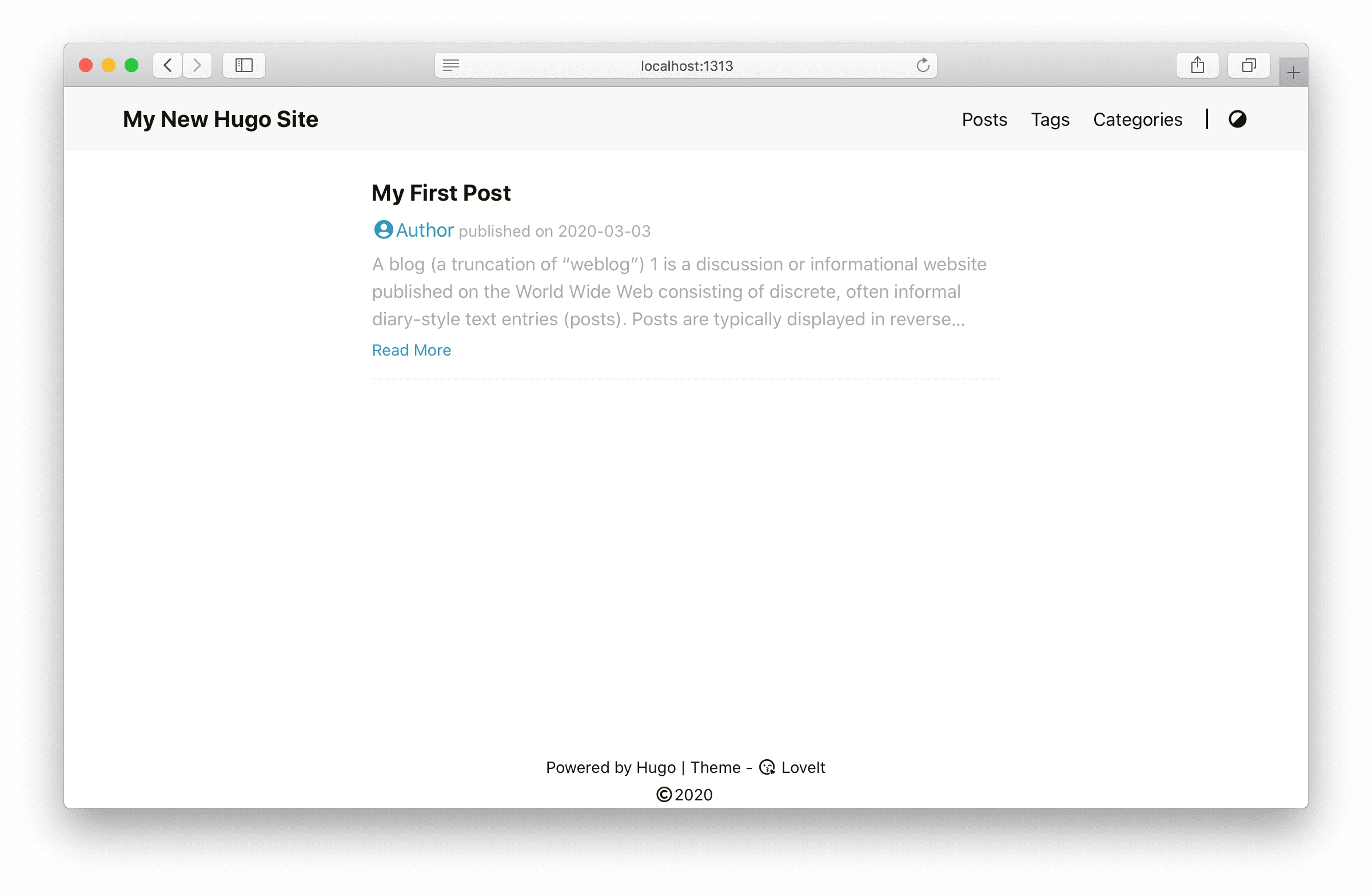 The following steps are here to help you initialize your new website. If you don’t know Hugo at all, we strongly suggest you learn more about it by following this great documentation for beginners.